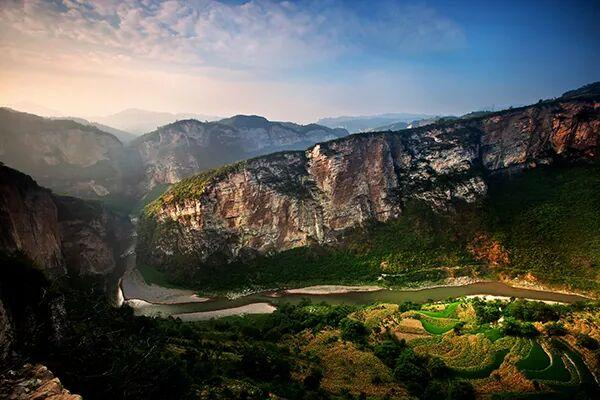 鸡鸣三省大峡谷位于赤水河与果哈河交汇处的叙永县水潦彝族乡岔河村,坐拥万亩花海(包括冰脆李、桃花、油菜花),是四川省百大最美景观拍摄点之一。此处是云、贵、川三省交界地,山峦环绕、峰峦耸立、水清秀美、深谷林幽。汛期时,峡谷内飞瀑湍流,气势磅礴;枯水期,赤水河清波荡漾,碧潭细浪,涓涓流淌。游客还能欣赏到雾溢长河、山缠雾带、峡谷涨水、斜阳穿峡、跨省彩虹等巧夺天工的自然奇观。在这里,游客可尽情观山、赏水、览花、探峡谷、眺赤水河源头三省交汇地。