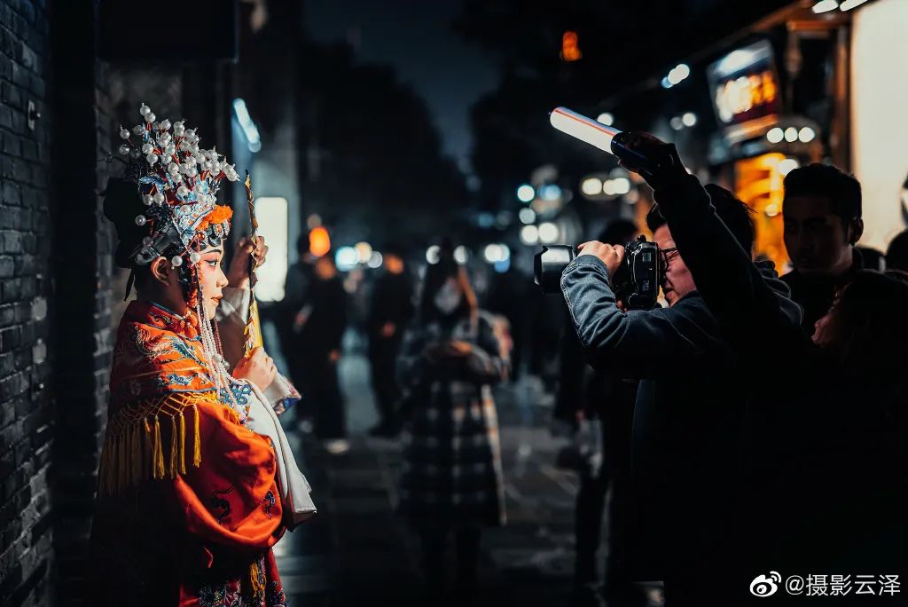 天色渐暗,灯光下的宽窄,更会让人在这里慢下脚步,消除一天的疲倦。品茶、采耳、小吃、观戏,哪怕是在巷子里站一会,都是一种享受。